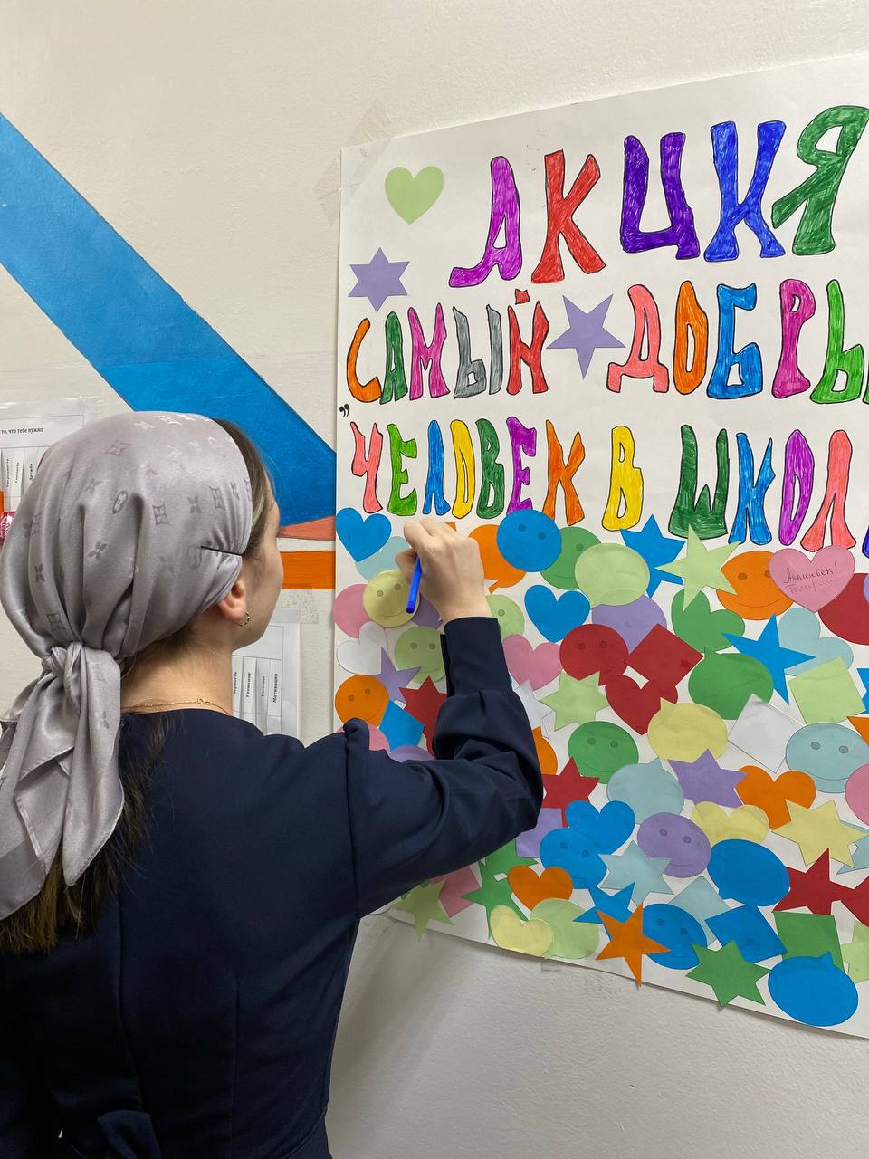 24.11.2023На базе СОШ №7 города Ачхой-Мартан накануне состоялось мероприятие, посвященное неделе психологии. В рамках этого события молодые ребята подготовили «Забор счастливых пожеланий», куда прикрепили стикеры с добрыми пожеланиями в адрес своих сверстников. Параллельно они организовали акцию «Самый добрый человек в школе».