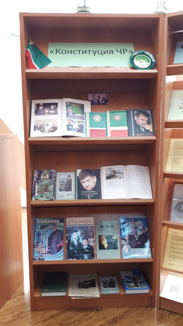 21-22 марта 2024г. В библиотеке МБОУ"СОШ№7 с.Ачхой-Мартан имени С.С Гайрбекова" прошла выставка, приуроченная ко Дню Конституции ЧР. Учащиеся узнали об истории праздника и основных положениях Конституции ЧР